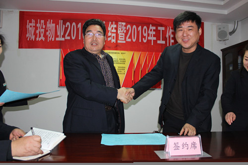 會議表彰了物業(yè)公司2018年度先進(jìn)班組和先進(jìn)個人,并完成了2019年度《經(jīng)營目標(biāo)責(zé)任書》和《安全目標(biāo)責(zé)任書》的簽訂。