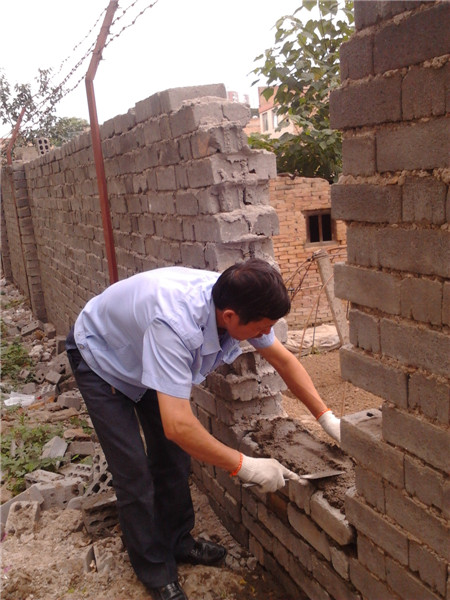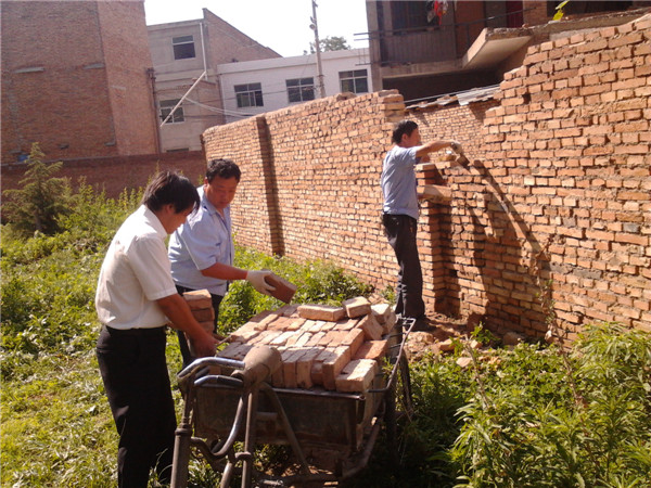 保衛(wèi)小區(qū)安全,服務中心修補倒塌圍墻