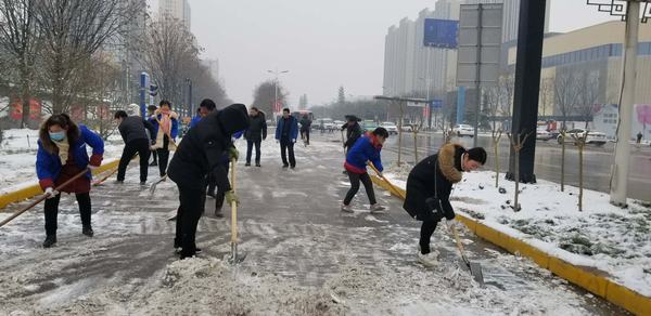 由于氣溫較低,主干道路的雪被壓得很瓷實,清掃工作十分困難。天氣雖然寒冷,但是大家熱情高漲,即使手凍的通紅,也擋不住大家的干勁。都爭先恐后,團結協(xié)作、井然有序,掃的掃、鏟的鏟,干勁十足,一心想著將路面的積雪盡快清除,經過一天的奮戰(zhàn),基本將包抓路段、主干道積雪清掃干凈,確保了廣大居民、業(yè)主的出行安全。